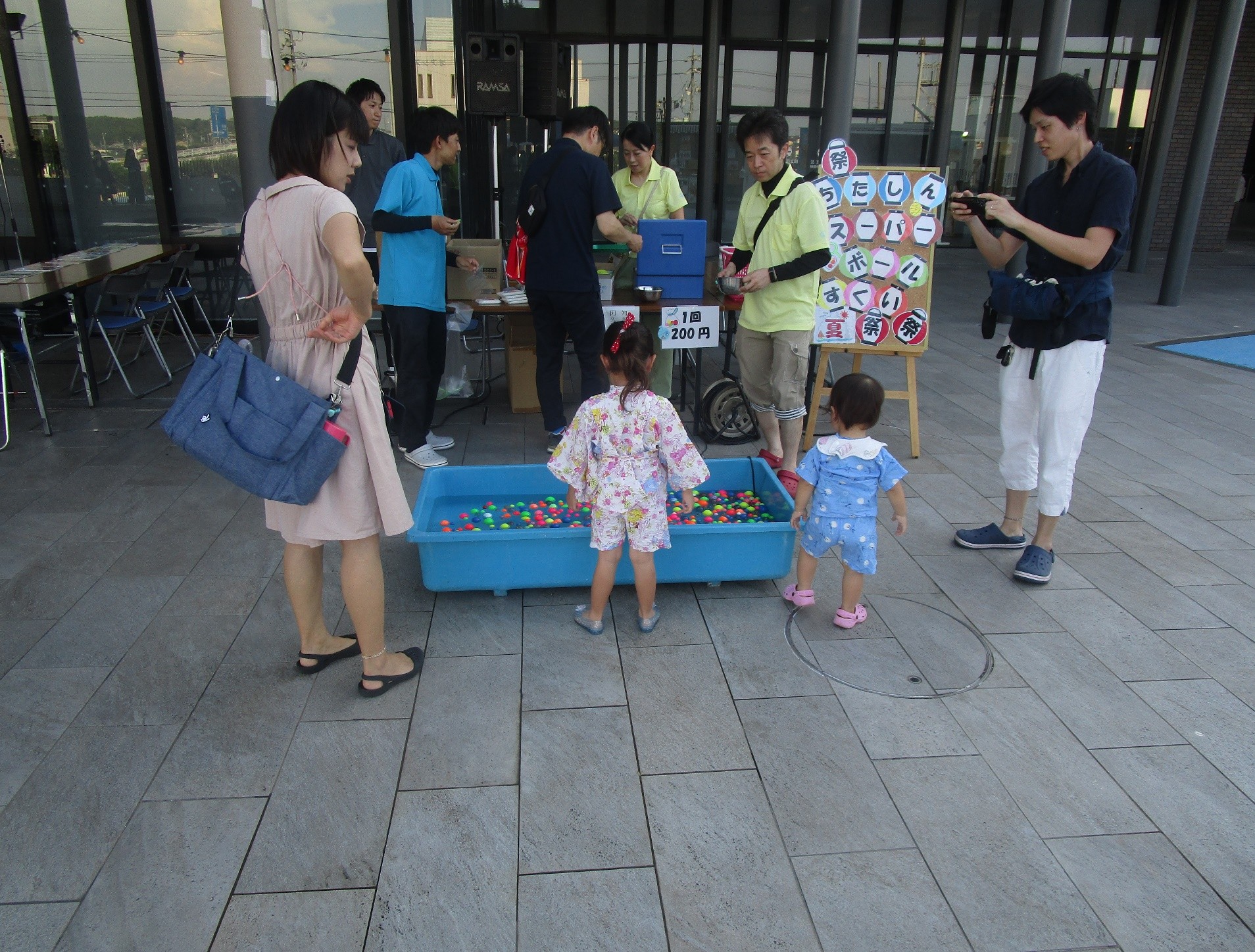 令和7年8月16日、阿久比町の「あぐいふれあい盆踊りの夕べ」において阿久比支店職員が「スーパーボールすくい」を出店、盆踊りの盛り上げに協力しました。