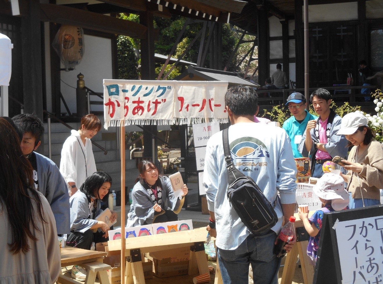 両日は子供向け縁日の「射的」や「から揚げ転がし」などのゲームを交代でお手伝いし、ゲームが成功し喜ぶ子供たちの笑顔を見ることができました。