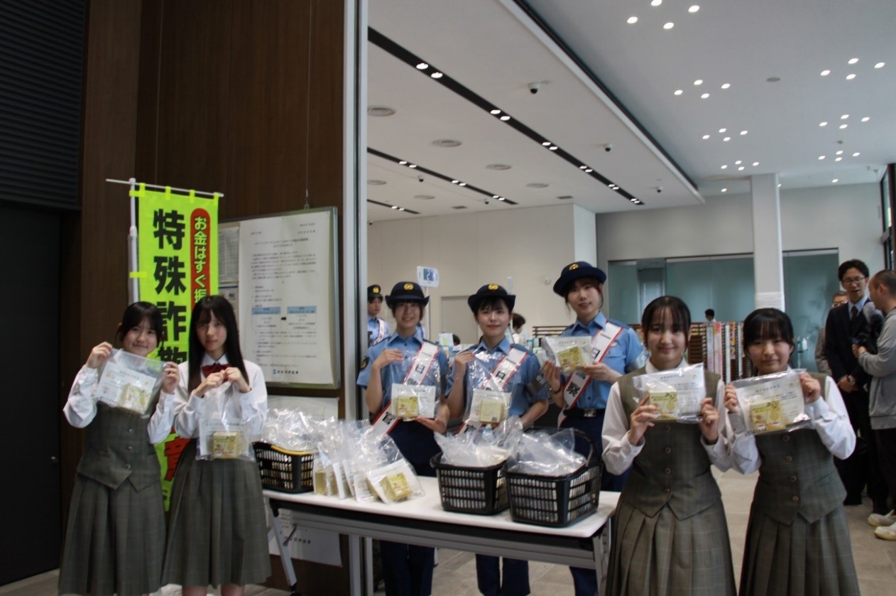 知多信用金庫は6月15日の「信用金庫の日(休日のため6月13日実施)」に「特殊詐欺未然防止啓発活動」を全店で実施しました。啓発品には半田商業高校の生徒さまが開発に携わった紅茶「爽やかゆずと癒しのジンジャー」を採用、生徒さまが本店営業部において職員とともに啓発活動を行いました。